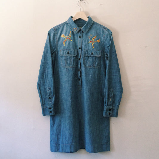 Dreams of Flying Hand Embroidered Denim Tunic. Size Small. One of a Kind and Ready to Ship