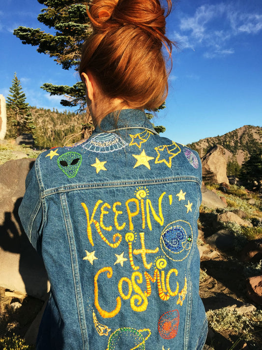 Keepin' It Cosmic Hand-Embroidered Denim Jacket