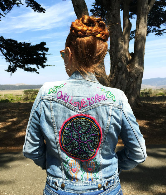 All Is Full Of Love Hand-Embroidered Vintage Denim Jacket