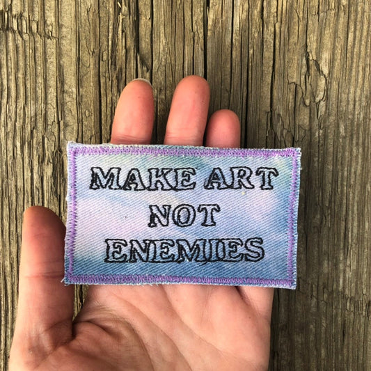 Make Art Not Enemies. Handmade Embroidered Canvas Patch