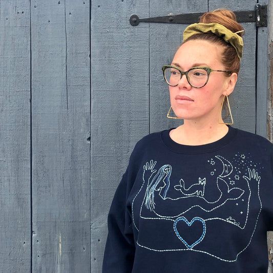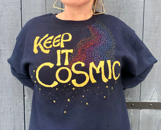Keep it Cosmic. Hand Embroidered + Painted Crewneck Sweatshirt