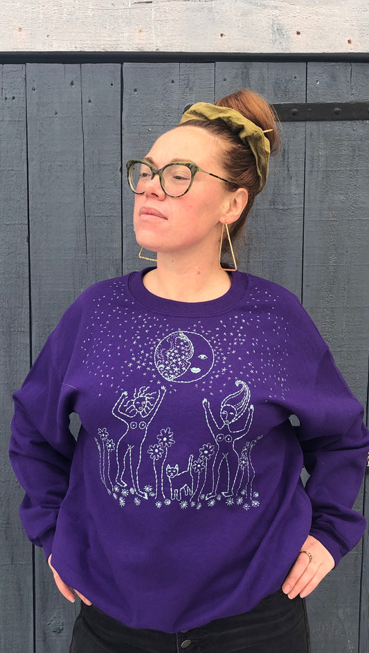 Ladies Lunar Jam Sesh. Hand Embroidered Crewneck Sweatshirt