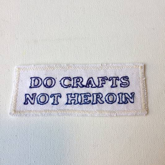 Do Crafts, Not Heroin. Handmade Embroidered Canvas Patch.