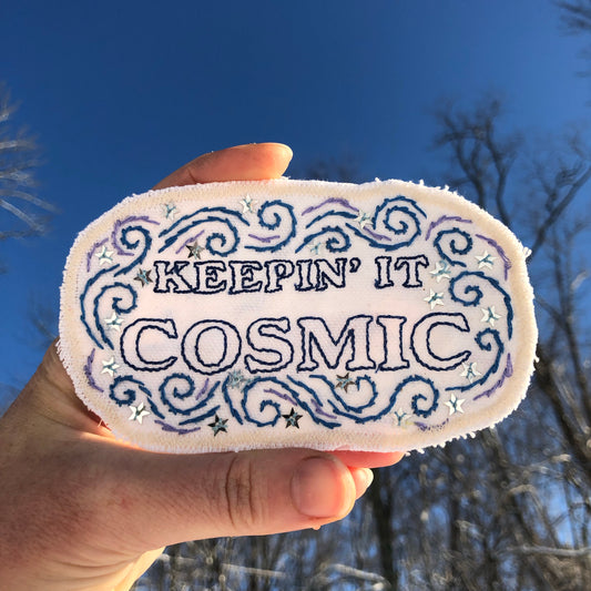 Keepin’ it Cosmic Large Embroidered Patch. Cotton Canvas