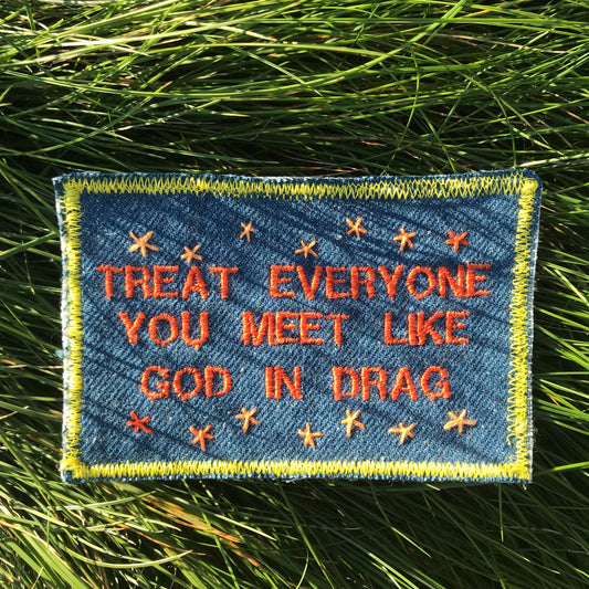God in Drag. Ram Dass Quote. Handmade Denim Patch