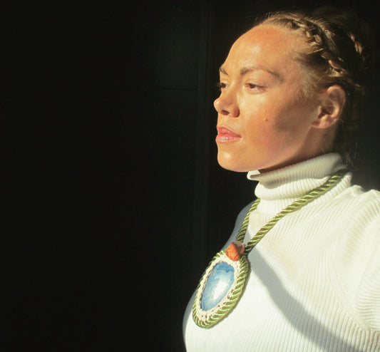 Rope & Crystal Statement Necklace. Blue Agate Stone. Geode Jewelry.