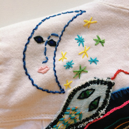 KEEP IT COSMIC Hand-Embroidered Denim Jacket