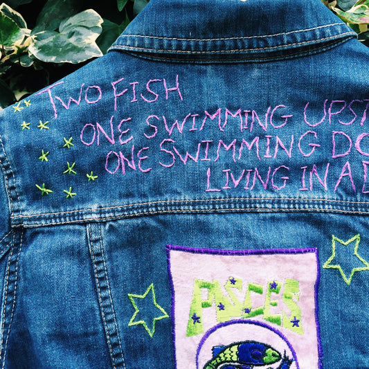 PISCES Zodiac Hand-Embroidered Vintage Denim Jacket