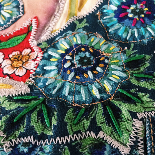 Poppies, Sunshine and Girls! Appliqué and Hand Embroidered Upcycled Denim Art Jacket