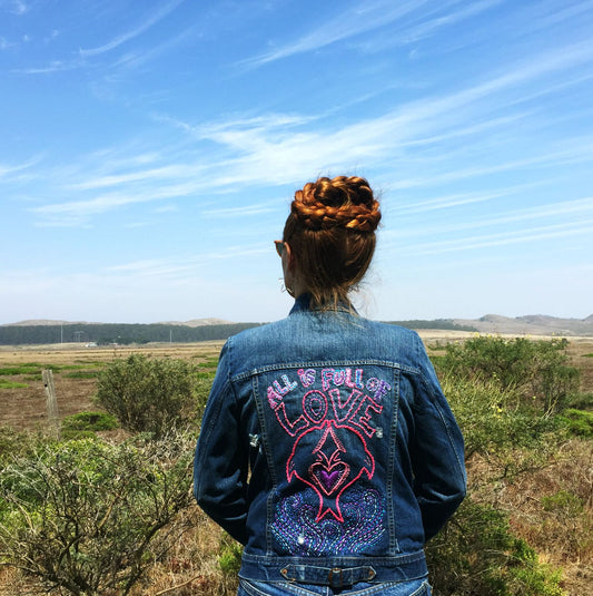 All Is Full Of Love Hand-Embroidered Vintage Denim Jacket