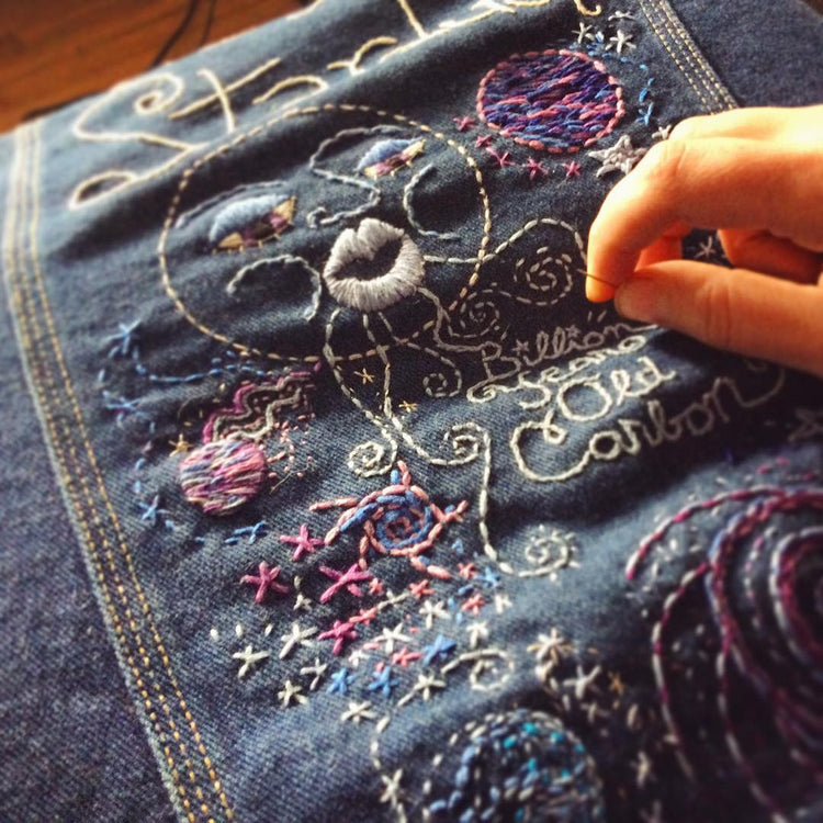 KEEP IT COSMIC Hand-Embroidered Denim Jacket