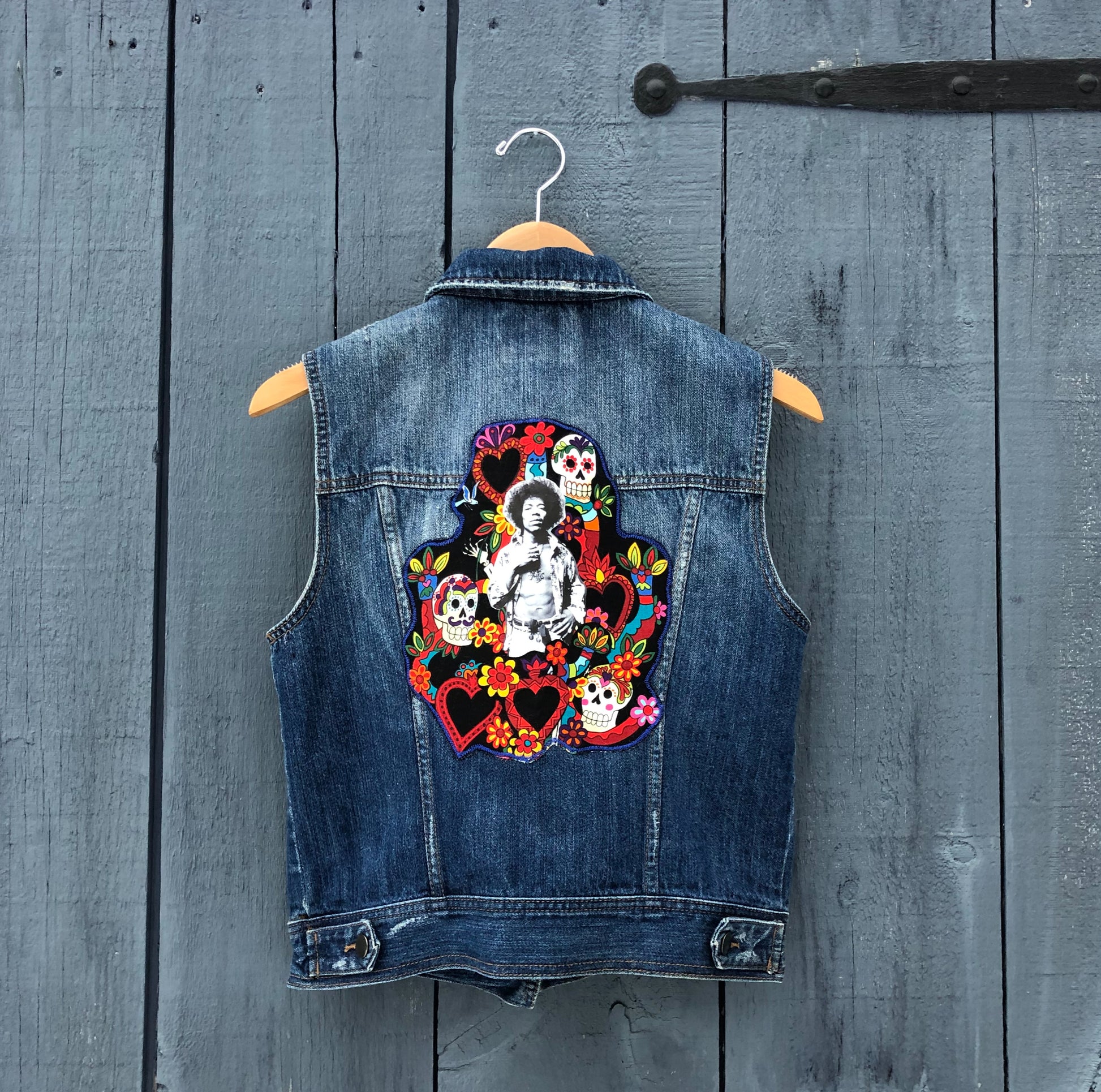 Jimi Hendrix Applique Denim Vest. Size Small. One of a Kind. Free Shipping