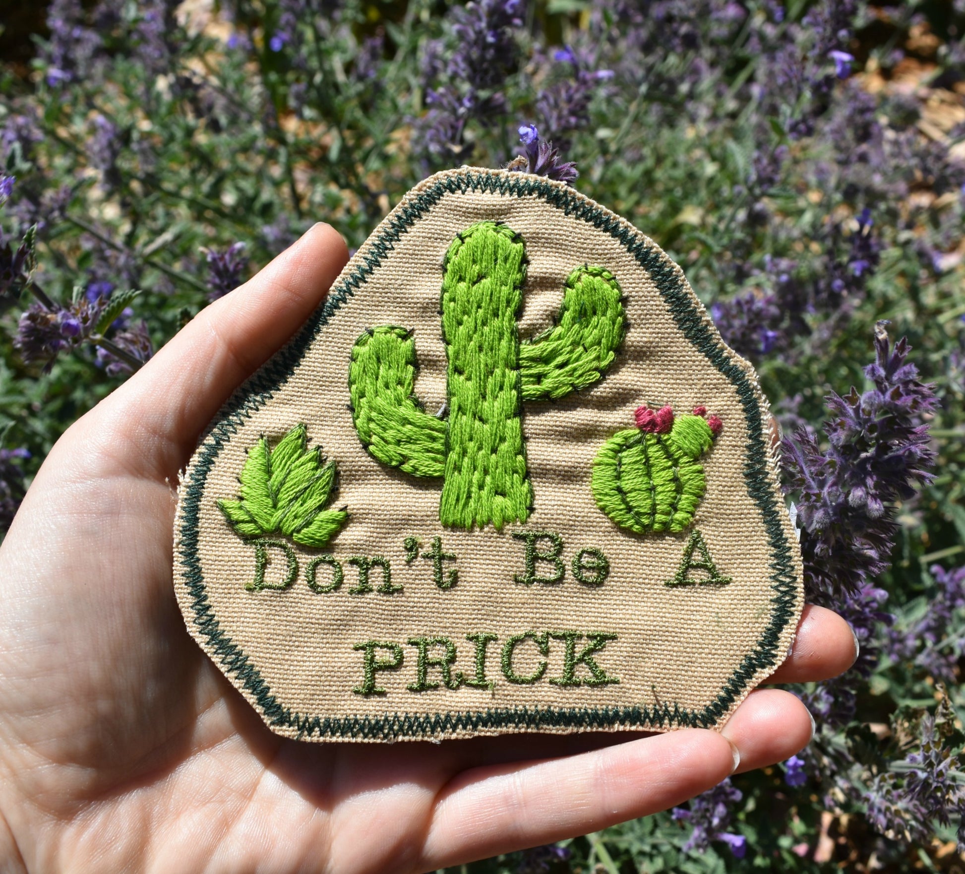 Don't Be A Prick. Handmade Embroidered Canvas Patch.