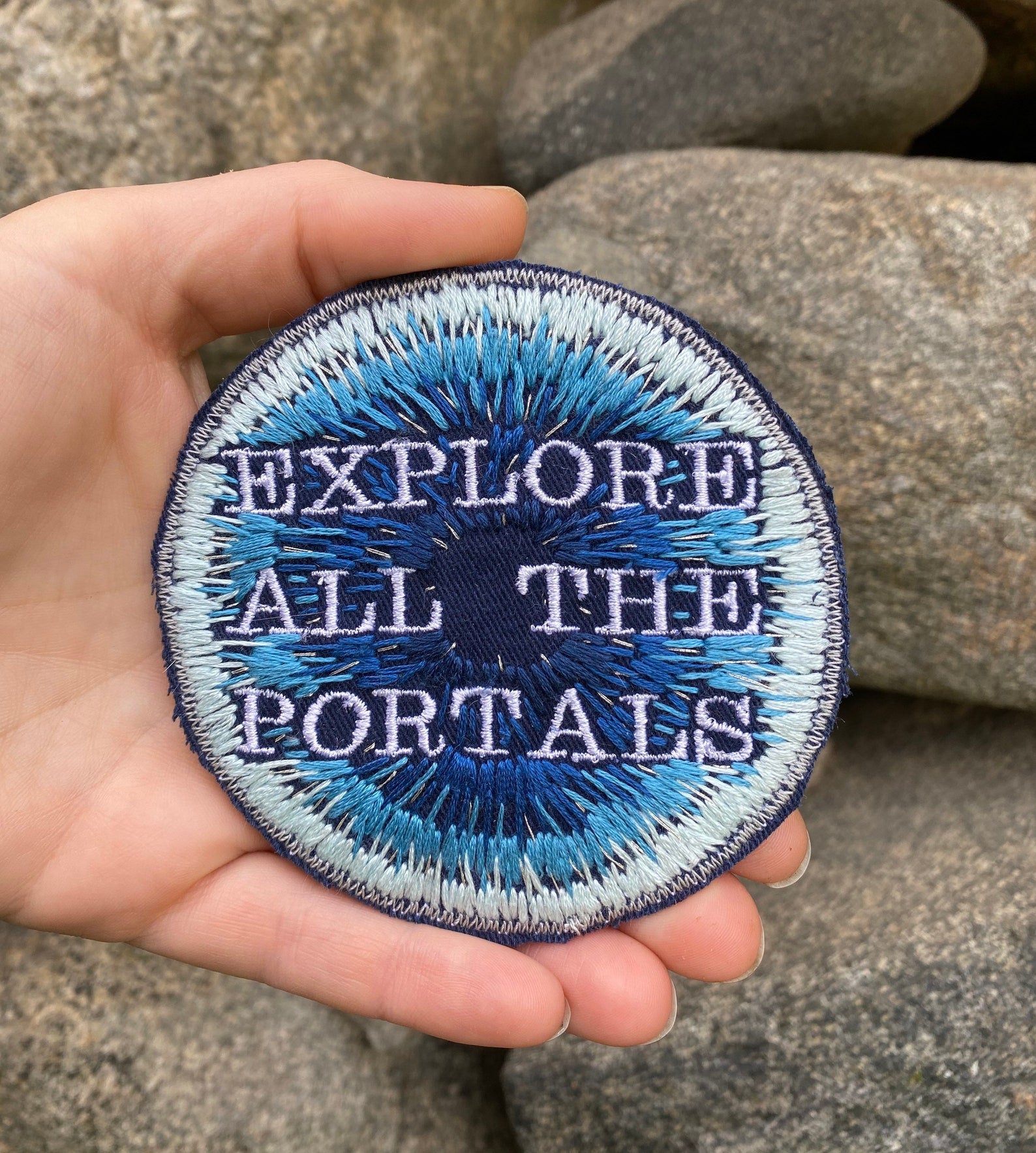 Explore All The Portals. Handmade Embroidered Canvas Patch