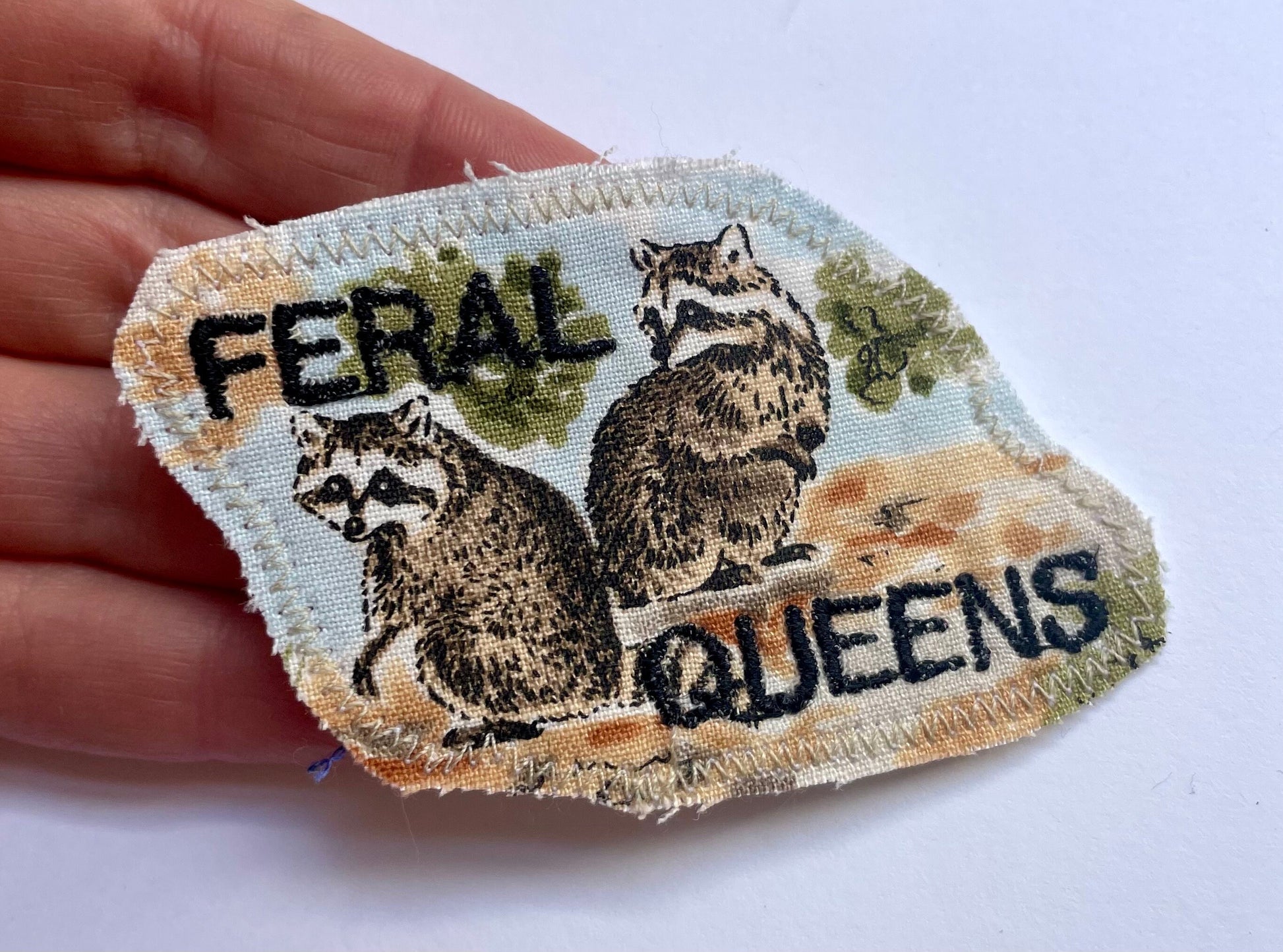Feral Queens. Handmade Sustainable. Vintage Cotton Fabric Raccoons Patch. Woodland Creature. One of a kind.