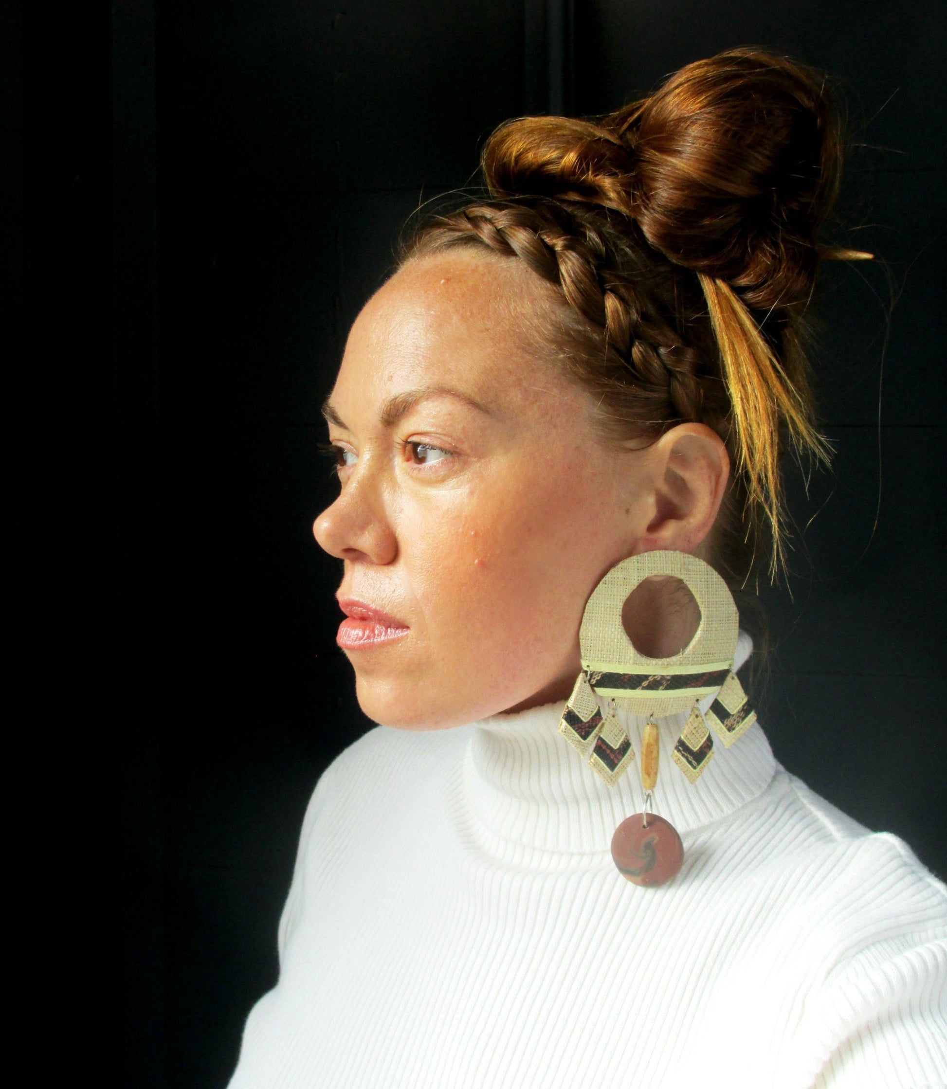 Giant post earrings I made with magical vintage components (handmade in the Philippines and sourced locally) to which I added handmade clay disks and wood beads.