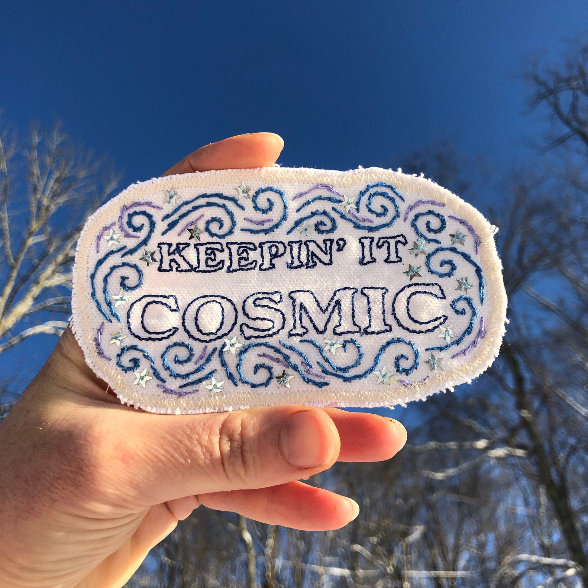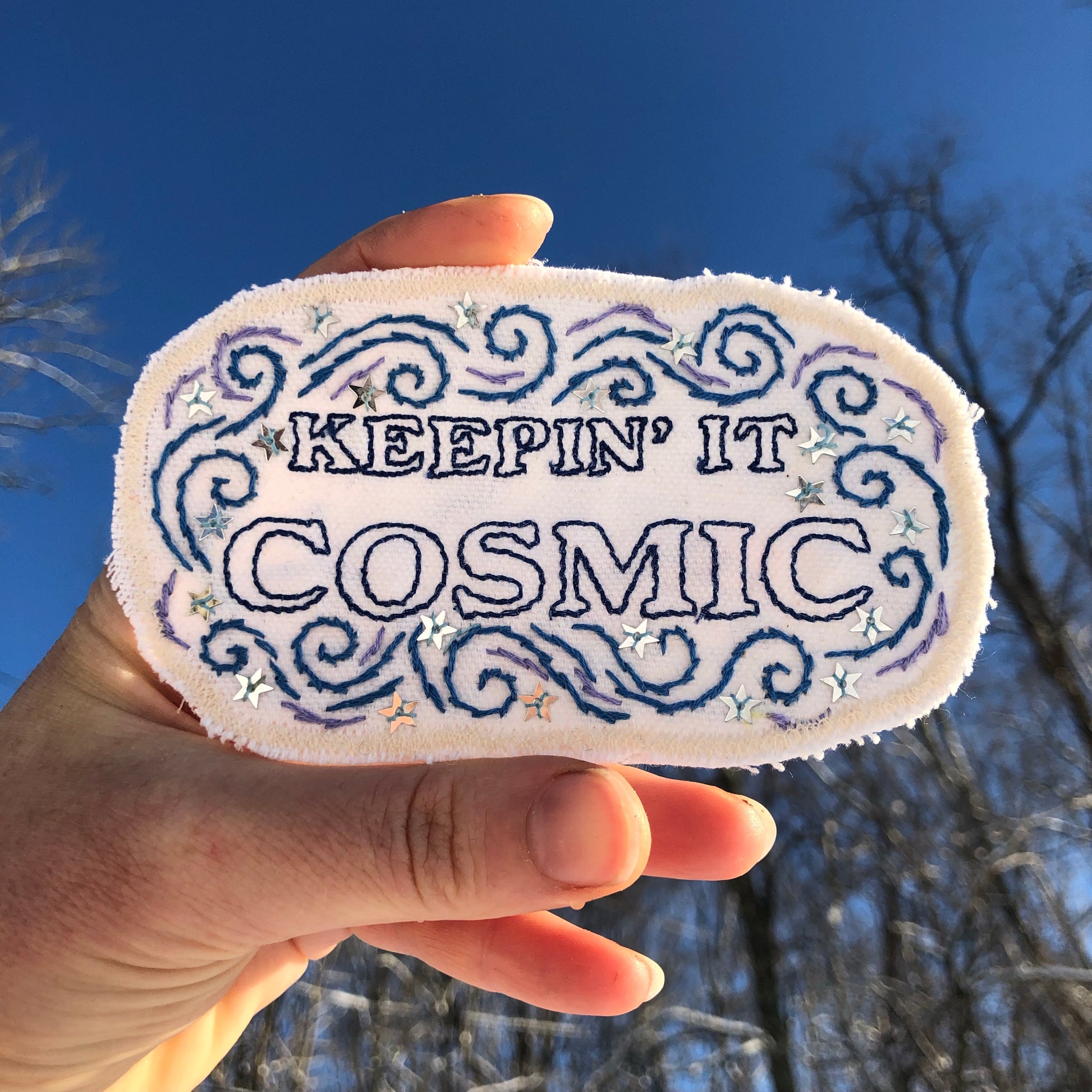 Keepin’ it Cosmic Large Embroidered Patch. Cotton Canvas