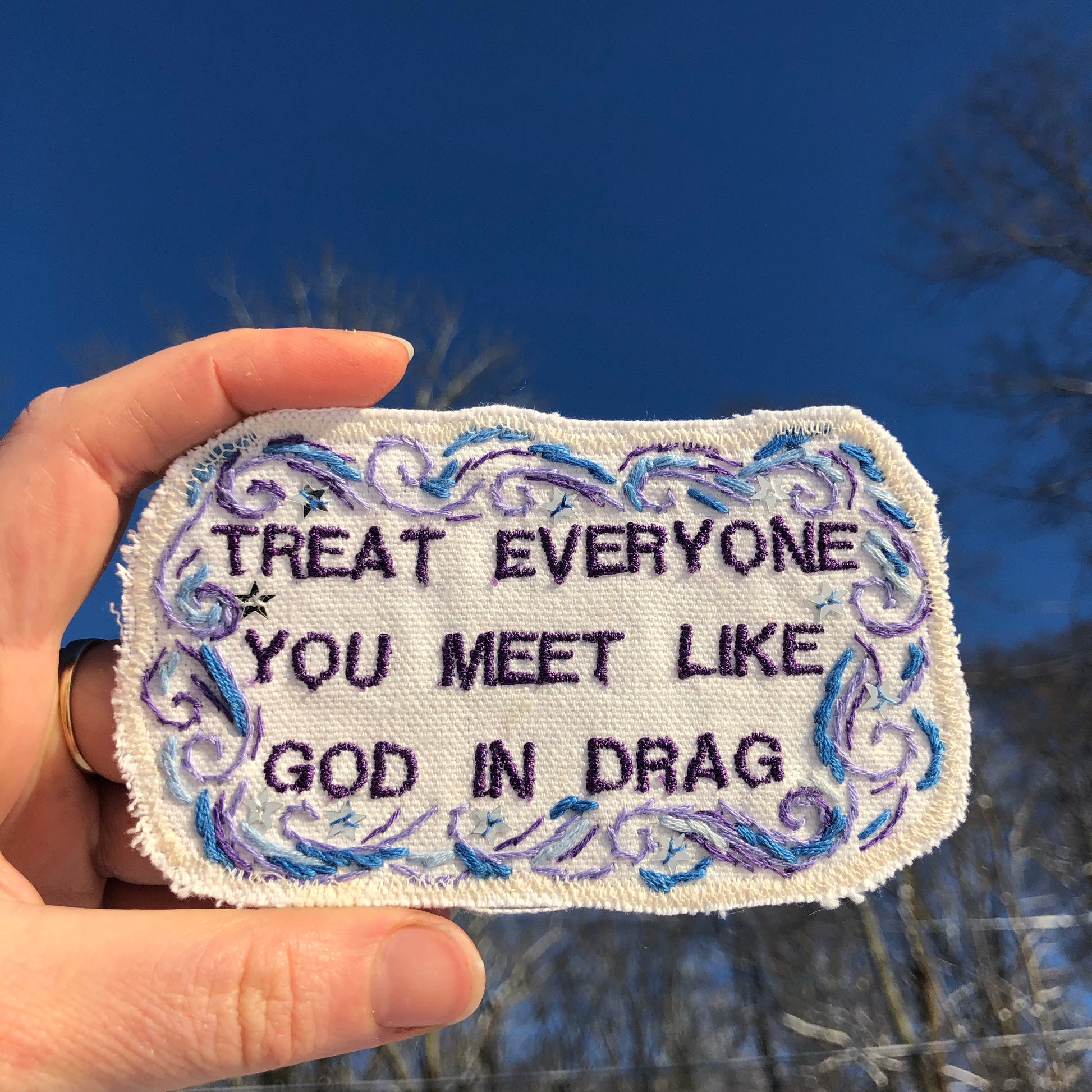 Epic zen/best advice quote on a one-of-a-kind embroidered patch on 100% cotton canvas. Jazzed up with hand embroidery in fine quality cotton thread and silver sequin stars. Ready to rock on your fave jean jacket... or whatever else you want to sew it on!