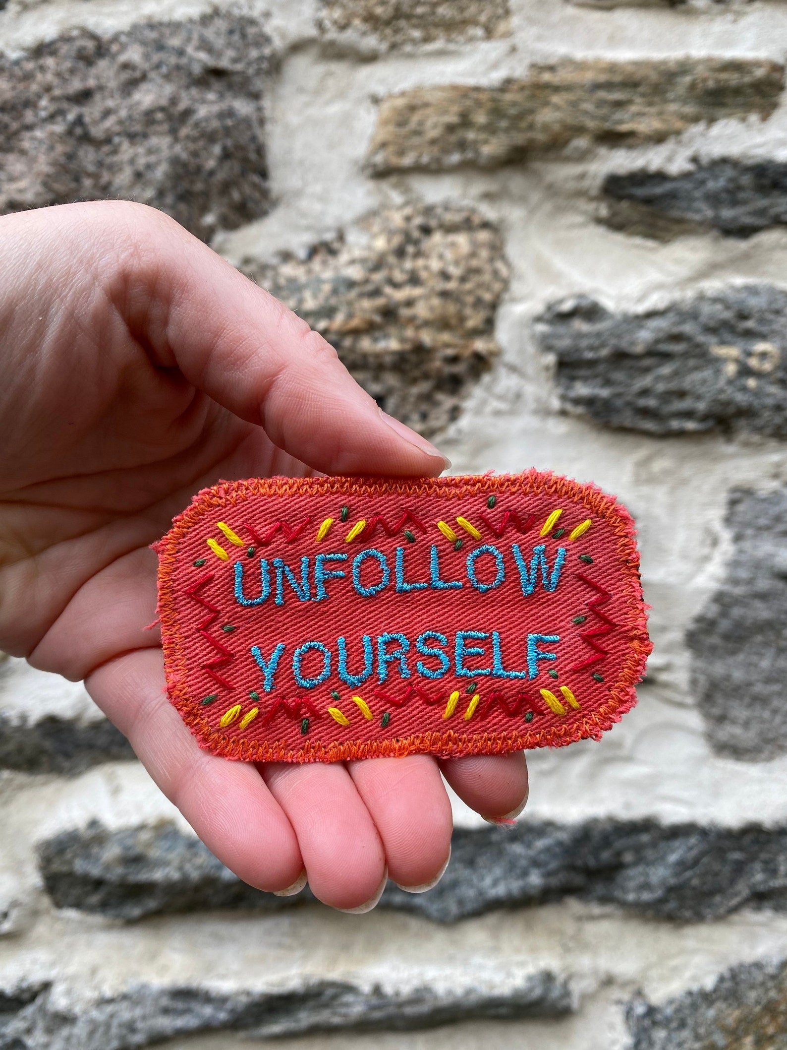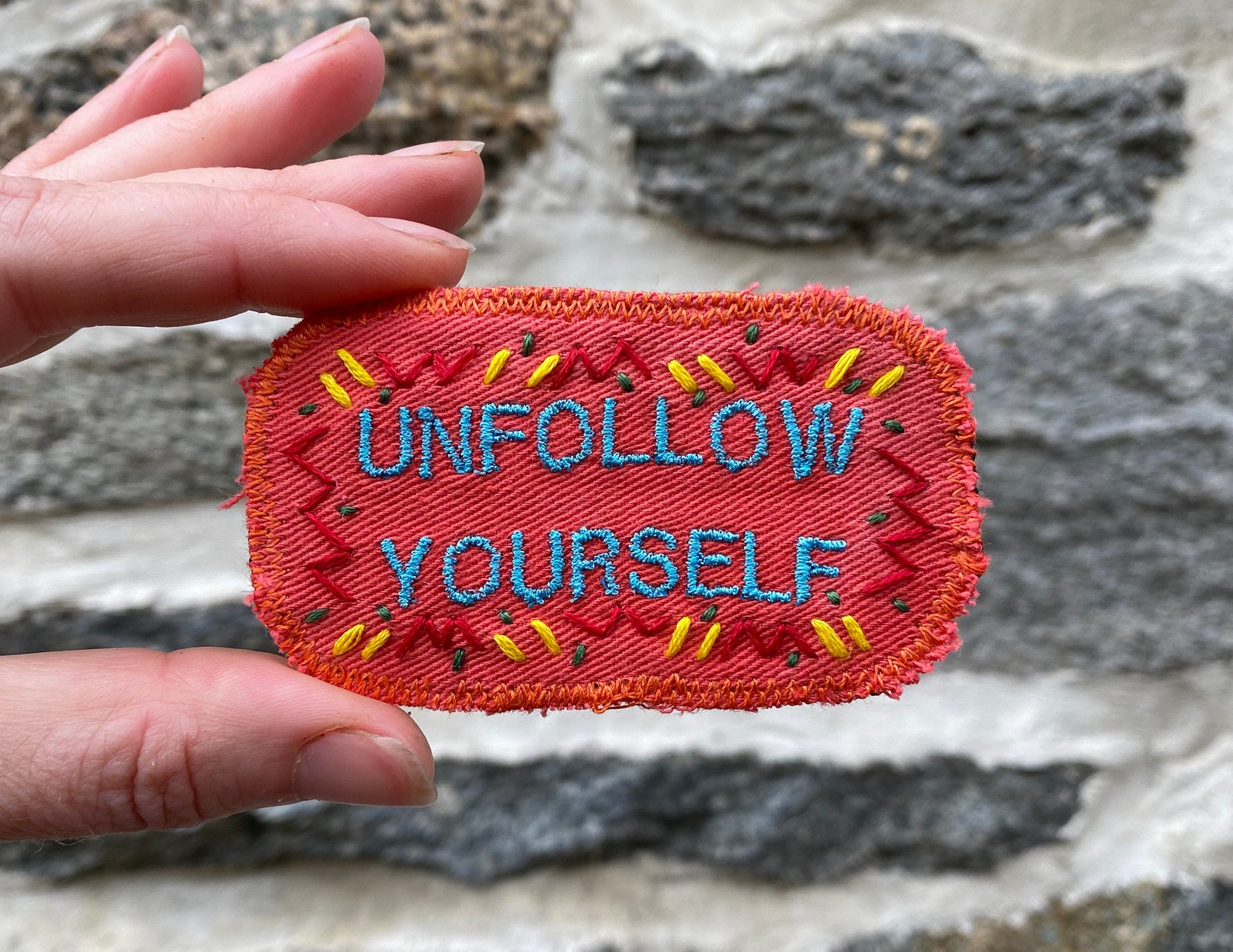 Unfollow Yourself. Handmade Embroidered Canvas Patch